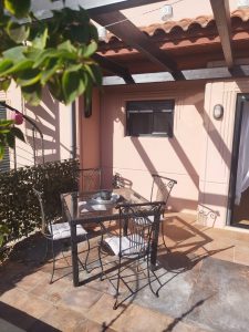 The apartment is a brand new accommodation. It offers a fully equipped kitchen, a new bathroom, a bedroom with a double bed (or two single beds), a living room with a sofa bed for up to two people, a terrace, a garden, and an outdoor pool.